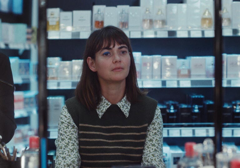 Aurora’s social life is also quite sparse as when not at work, or commuting to work, she is stuck in a malaise of existence. Her evenings consist of scrolling Instagram, falling asleep in her clothes because the space heater she has doesn’t work and making a meagre meal before starting the cyclical hell of being part of a machine that only values the output, and not the person behind it. As the film progresses, we see her dietary intake devolve. The first meal we see her eat at work is tomato pasta in a Tupperware. One of her next meals is from the canteen, and by the third act and a few days from payday, Aurora is stealing crisps and pilfering cupcakes intended for the entire workforce.