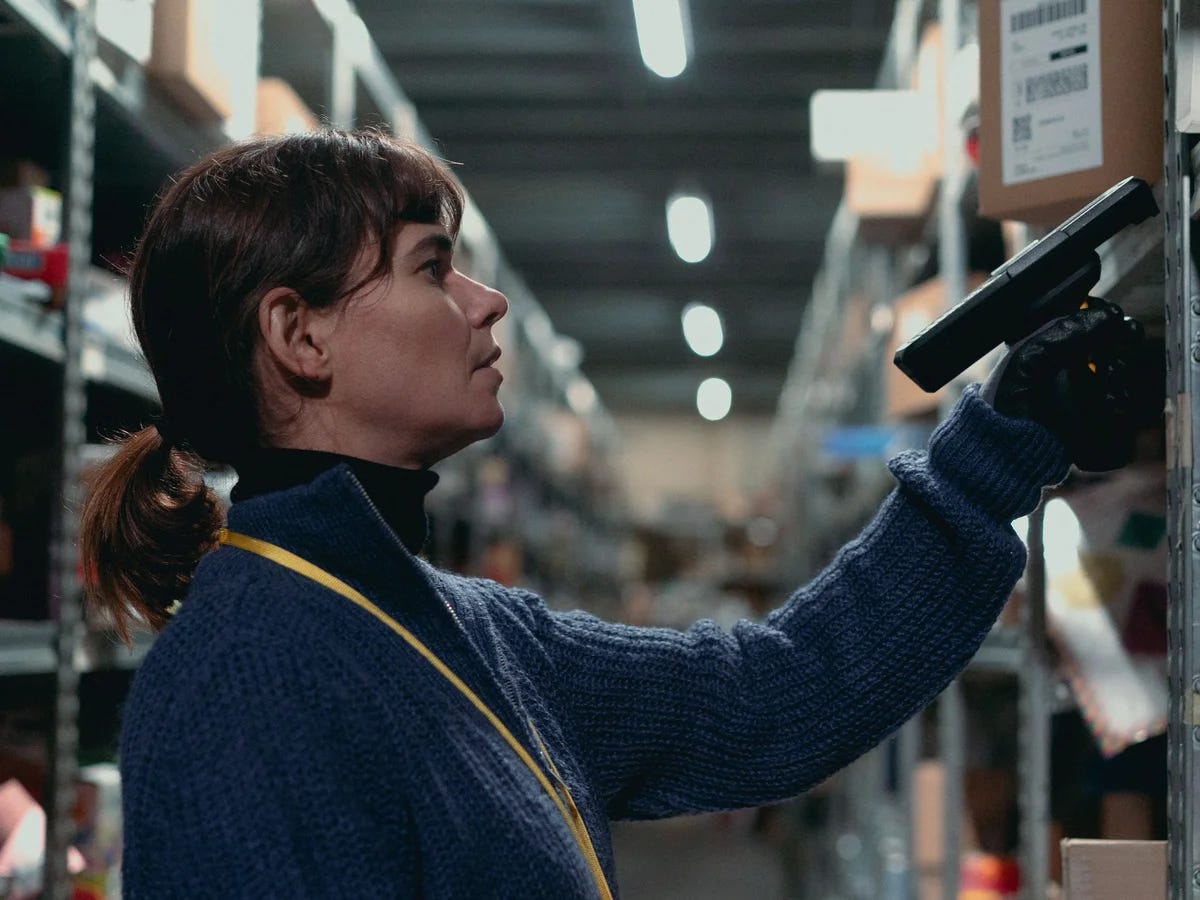 We first meet Aurora when she is working as a picker in a Scottish warehouse. The Portuguese migrant wields a handheld scanner which she aims firstly at a shelf, then at an item, and then a tub for the item to go into. Then a shelf, then an item, then the tub. Shelf. Item. Tub. If you think this sounds mechanical, and mind-numbing, you’d be correct. In On Falling, Aurora is a cog in the capitalist machine. She spends most of her time working between the industrial-sized shelves as the anemic lights flicker above her menacingly, while her scanner will perpetually beep should she take slightly too long to pull the trigger on scanning the next item sold by the company she works for.